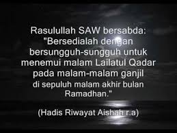 Oleh sebab itu kita dituntut oleh Allah SWT tingkatkan ibadah mu ketika 10 malam Ramadhan terakhir, karena dengan meningkatkan ibadah kita di sepuluh malam Ramadhan terakhir niscaya kita akan mendapatkannya malam nan mulia tersebut, nyatanya ? sepuluh Ramadhan terakhir adalah ketika dimana surau surau dan mesjid mesjid mulai kosong.